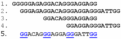 Example 2: 8729GGGGGAGAGGACAGGGAGGAGGGATTGG8756
